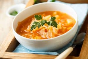 Přidám několik lžic. Kapustová polévka může snadno nahradit hlavní jídlo.